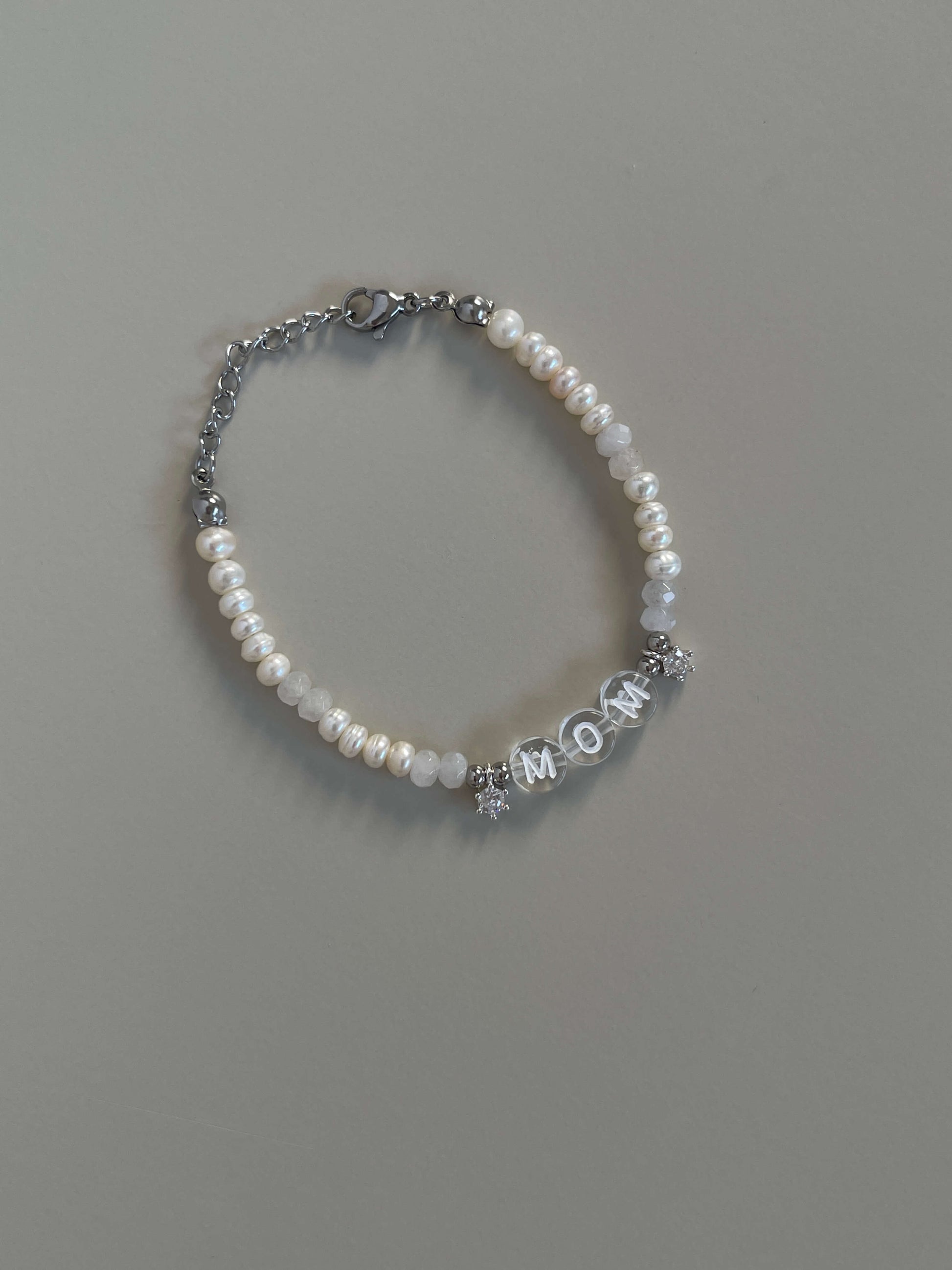 צמיד קליל ומיוחד עם פנינים אמיתיות ואותיות עגולות